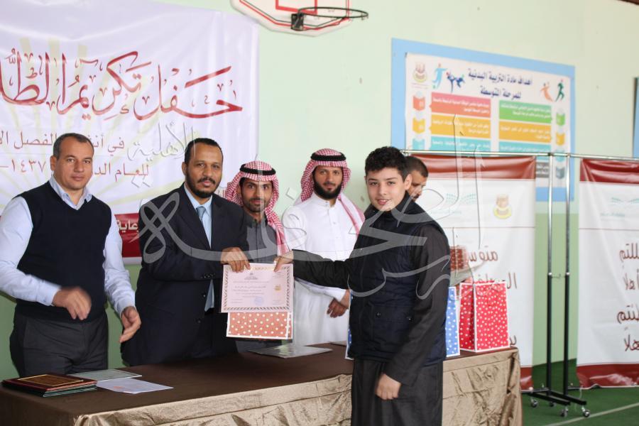 في حفل ختام الأنشطة الطلابية للفصل الأول من العام الدراسي 1437-1438هـ، قام النشاط الطلابي بمتوسطة الصحافة الأهلية بتكريم جميع المعلمين والطلاب المتميزين في الأنشطة الطلابية المختلفة، وبحضور هيئة الإشراف التربوي، وذلك يوم الاثنين الموافق 11-4-1438هـ