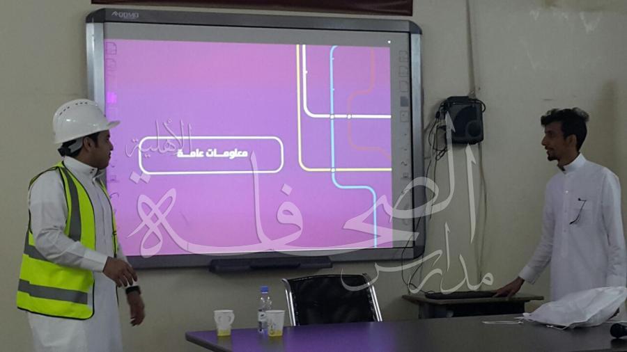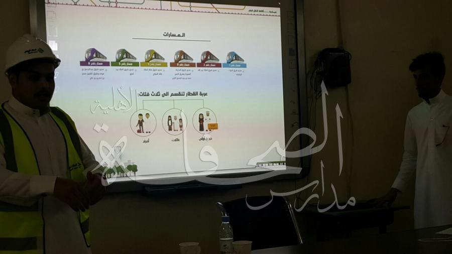 قام فريق من الهيئة العليا لتطوير مدينة الرياض بزيارة إلى المدرسة يوم الأحد الموافق 23-2-1439هـ، وذلك لنشر الوعي بثقافة استخدام النقل العام بين طلاب المدرسة والتعريف بمشروع النقل العام وأهميته وعناصره ومكوناته.