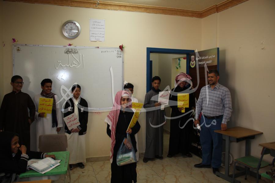 قامت فرقة التوعية الإسلامية بالقسم المتوسط بالتعاون مع المشرف التربوي الأستاذ ياسر قطب بتفيذ حملة السواك تحت شعار "مرضاة للرب مطهرة للفم" ضمن فعاليات البرنامج القيمي المحافظة على صحة الاسنان.